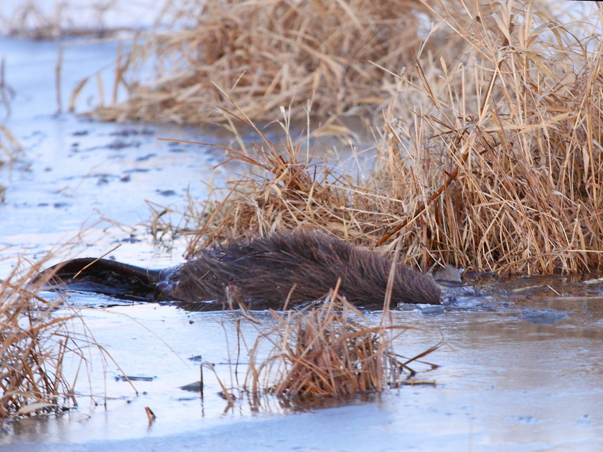 Piękne słońce dziś od samego rana nad Narwią. Pogoda idealna na bobry, niski stan wody w starorzeczach, topniejący lód i grzejące słońce. Z pracy udało mi się wyrwać po 16.00 w stroju "biurowym" i butach niezbyt nadających się chodzenie po rozlewiskach (delikatnie mówiąc). Pojechałem jednak z pracy prosto nad rzekę żeby nie stracić okazji, nie wiadomo kiedy się powtórzy. Bobry buszowały w krzakach niedaleko miejsca gdzie zaparkowałem auto, słychać było charakterystyczne skrobanie gałęzi. Nie mając dobrego widoku poszedłem nad znajome starorzecze. Zaczął się wspaniały zachód słońca, na bagnach siadła czapla. Pierwszego bobra zauważyłem 50m przed sobą a po chwili kilkanaście metrów przede mną lód uniósł się do góry i wyłoniła się głowa mojego modela. Najpierw umył swój brzuszek (który wcale nie wyglądał na wygłodzony), potem zrobił sobie kolacje z wikliny. Na koniec raczył zauważyć, że kilka metrów od niego stukam lusterkiem i dał nura. Było już dość ciemno, więc zabrałem się do domu, zresztą mój ubiór nie nadawał się na chłodny wieczór. Pozdrawiam