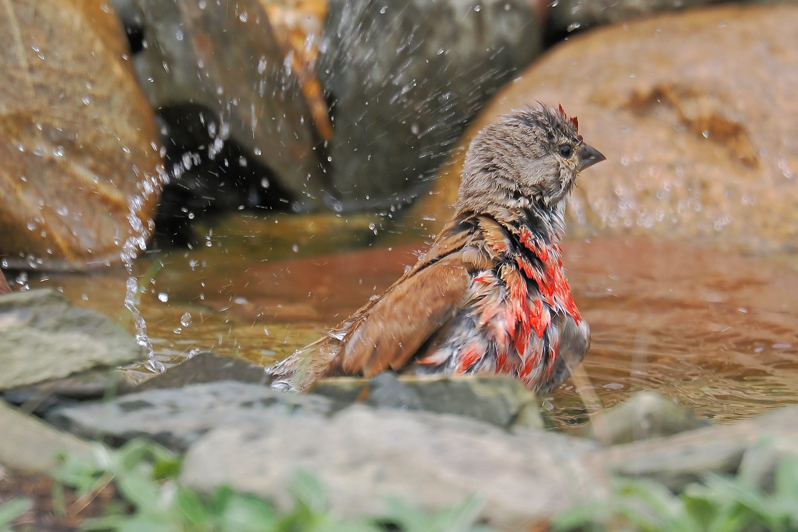 Sosnówka przy baseniku - już mokra, ale chyba się zastanawia czy nie powtórzyć kąpieli: