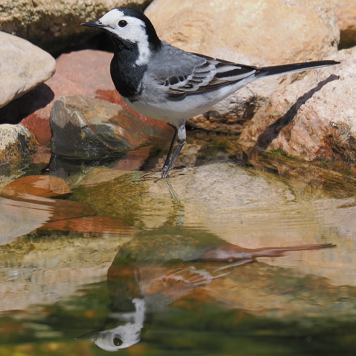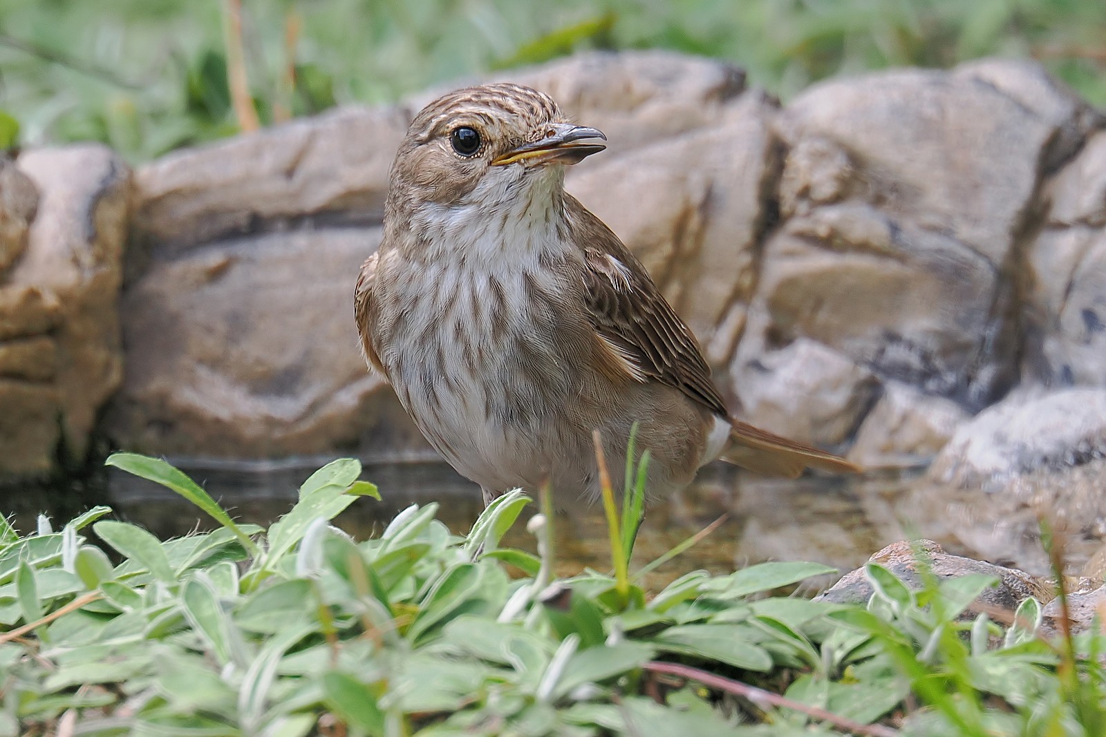 Zarówno ptaszki (w tym przypadku samica makolągwy) jak i osy w upał chętnie korzystają z baseniku: