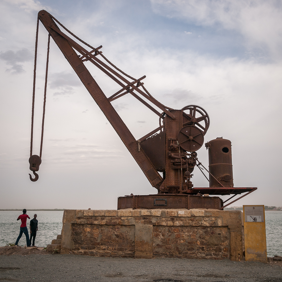 dźwig parowy pomocny przy budowie kolei do Dakaru, Mauretanii i Mali