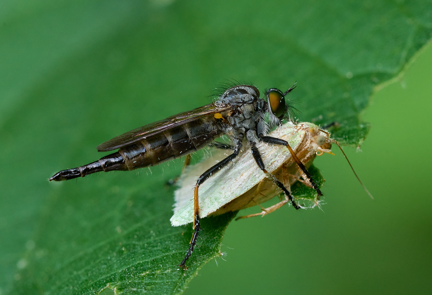 Oko ofiary stałoby się ostre gdybym przesunął się w prawo. A wtedy słomka, na której wiszą owady zasłoniłaby je razem z odwłokiem.