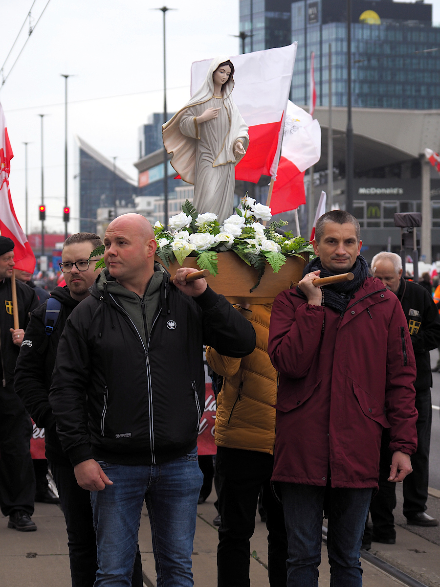 Będąc na Marszu Niepodległości raczej nie wyczuwałem jakiejś ogólnej radości. Teksty obrażające innych, deptanie czy palenie flagi, baner z tekstem do prezydenta stolicy. No i oczywiście jeszcze modlitwy itd.