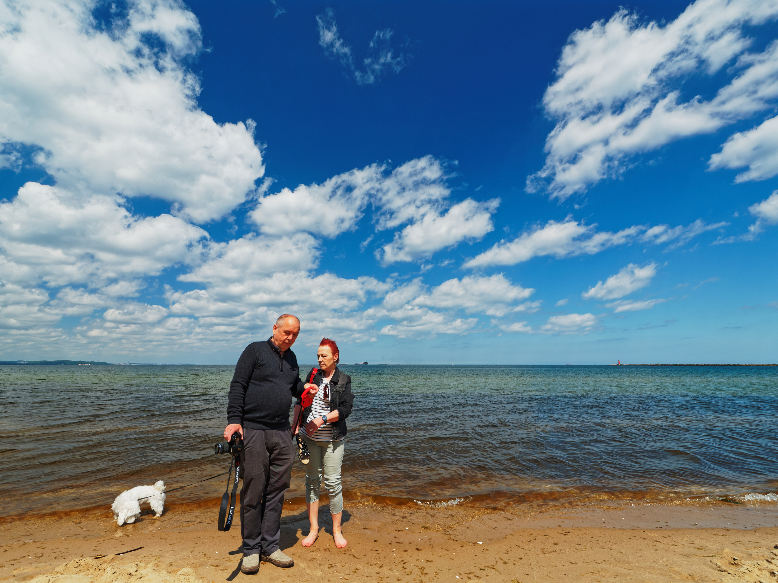 Podoba mi się portret podwójny 1035. Ekspresjonistyczne niebo, woda po horyzont, poszukujący psiak i dwoje tutejszych ludzi. Chwila zatrzymana w kadrze. Super.