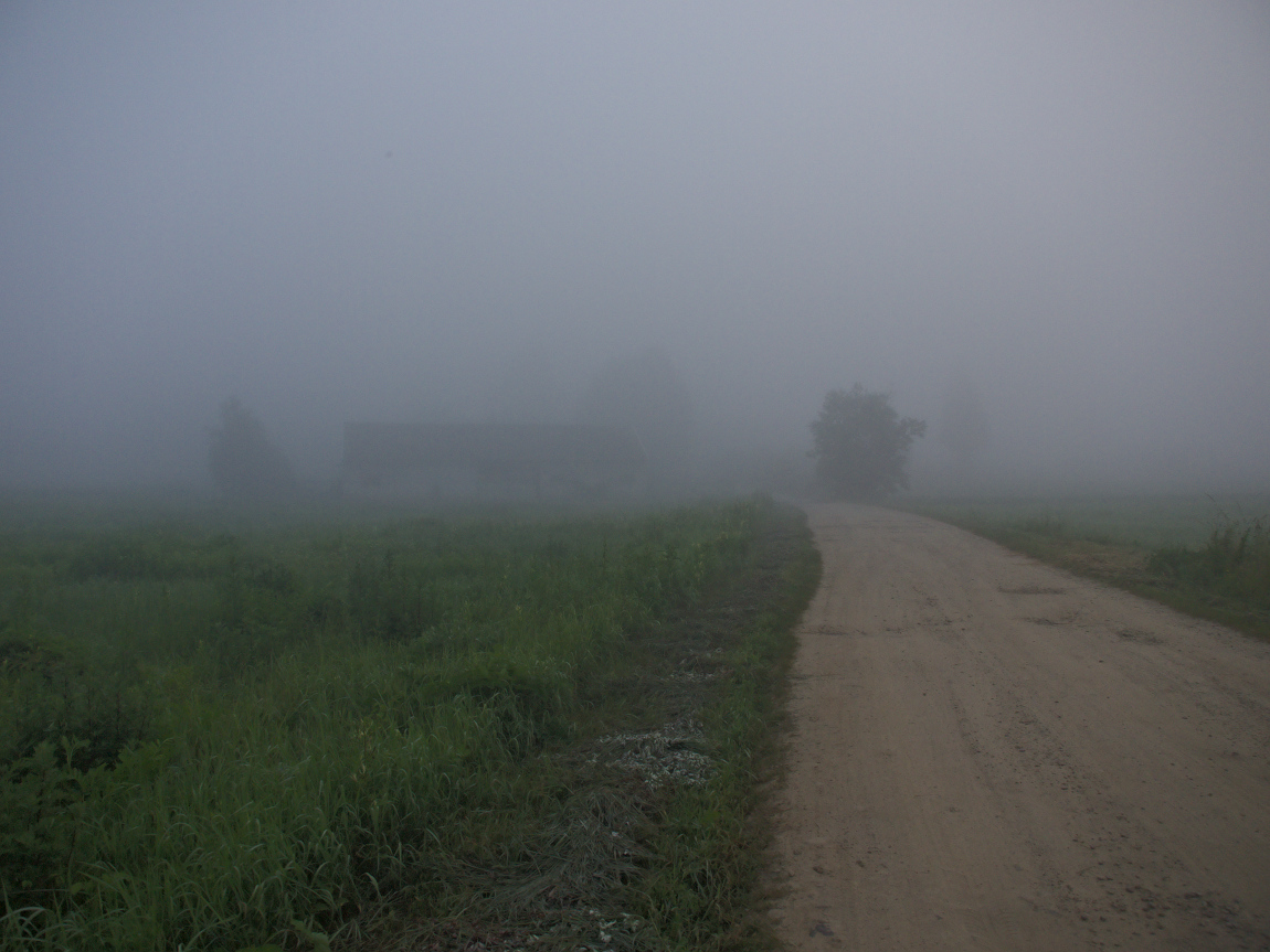 Zwarty i gotowy, niewyspany przez komara - jadę. Po drodze mgły takie, że zwalniać do 40/h trzeba było. Rybaków pełno - jedni łowią, inni śpią.
