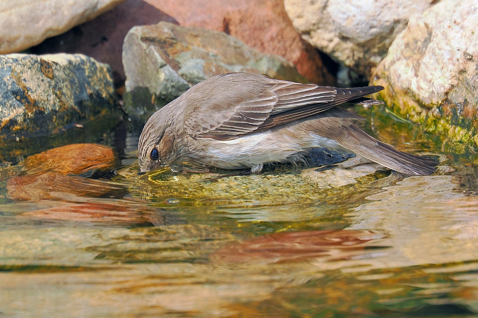 Muchołówka szara gasi pragnienie:
