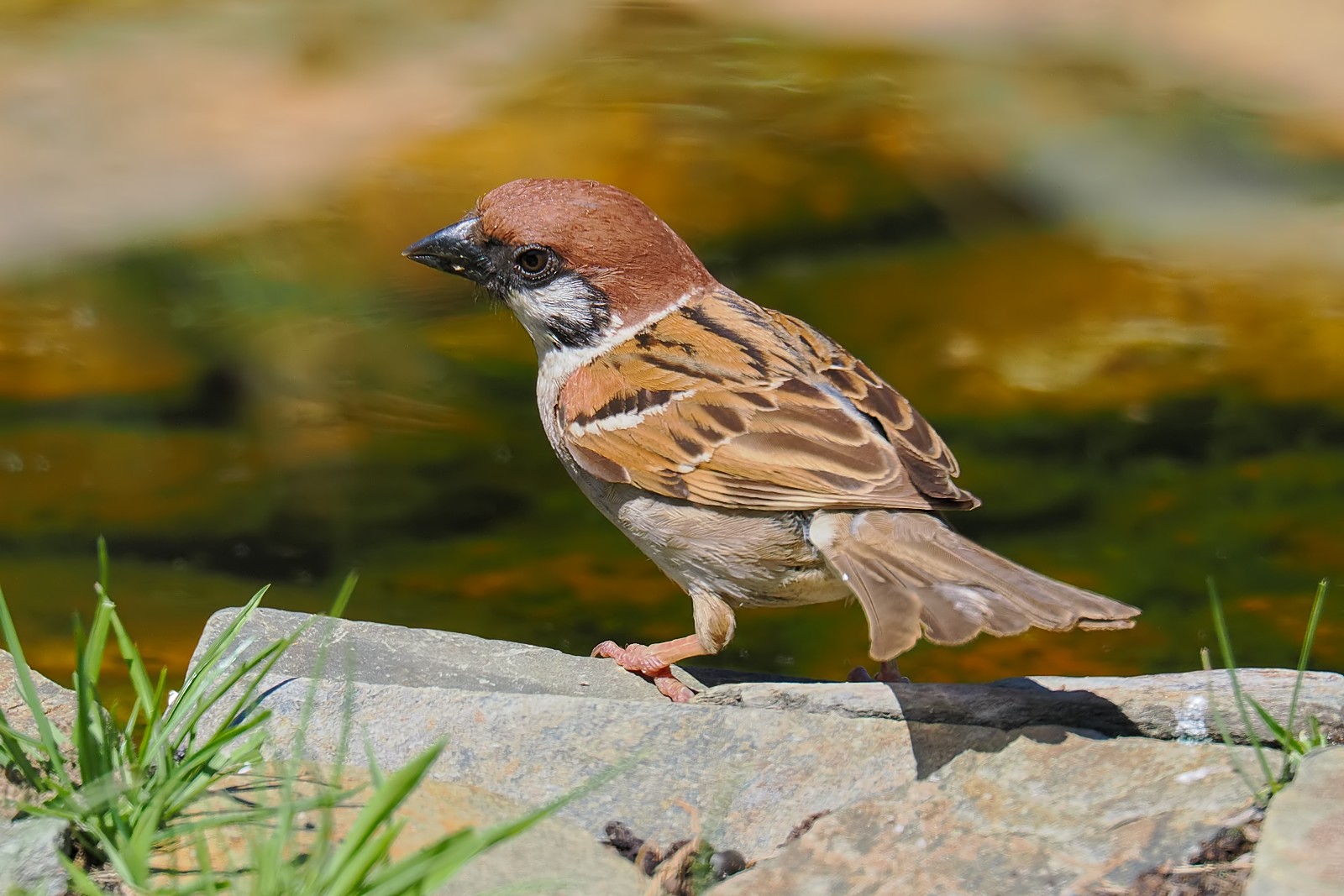Drozd śpiewak tuż po wyjściu z wody: