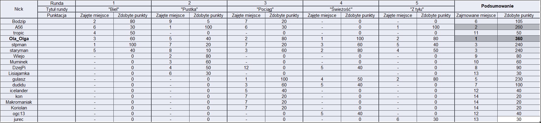 Liderem po 5 rundach jest @Ola_Olga !