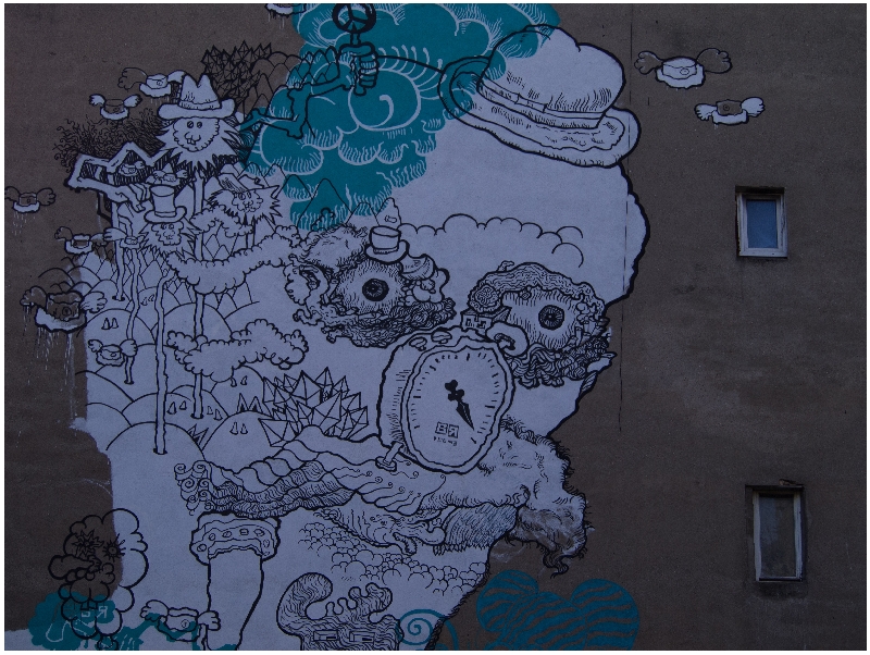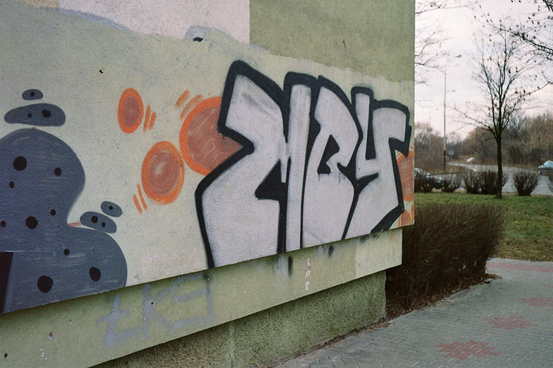Łódź ul. Konstantynowska przy ZOO z analoga (generalnie jest tam ich mnóstwo na całym murze)