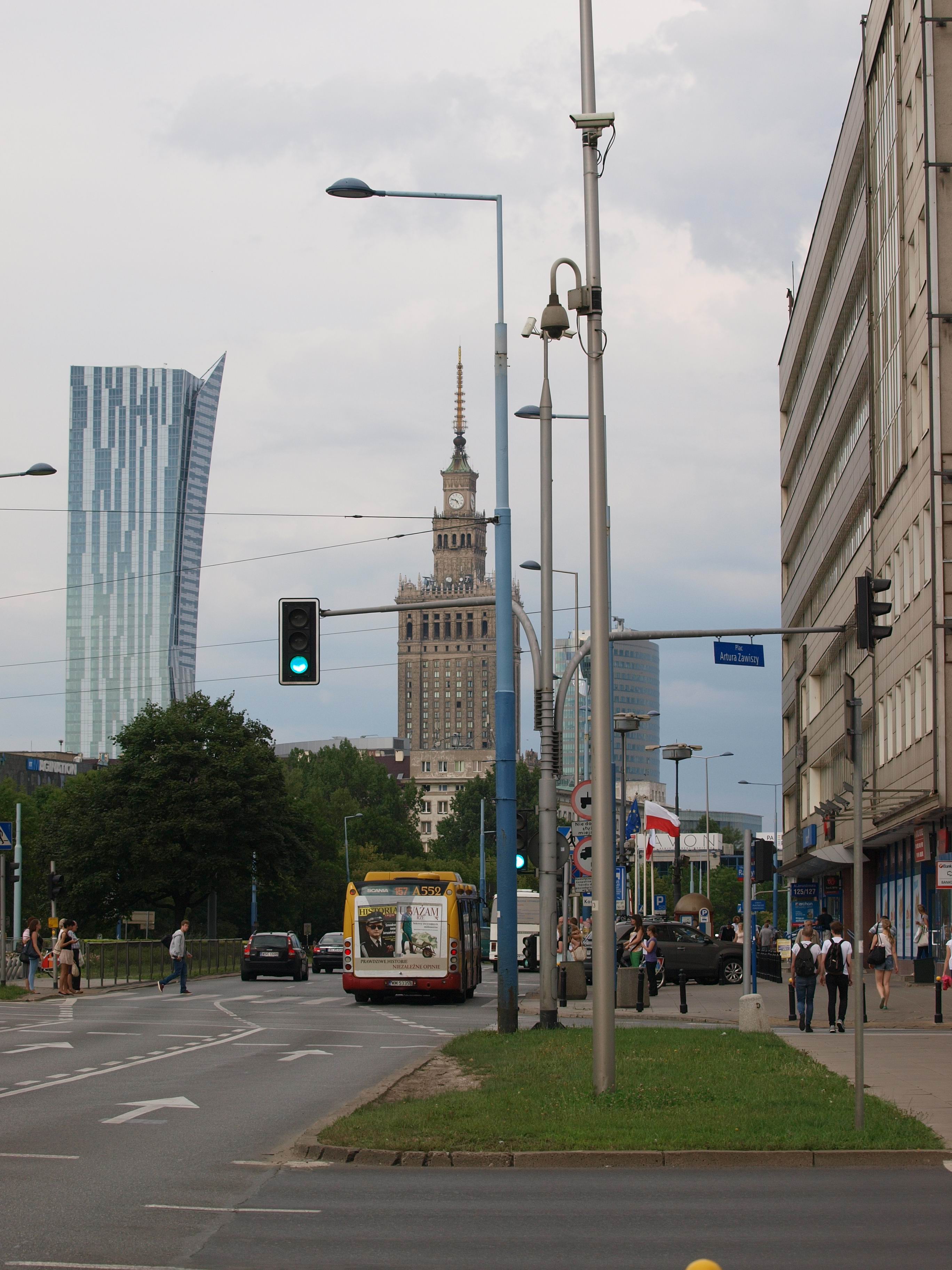 Czy coś robiłeś ze zdjęciami pokazującymi PNiK w tle? Zielone światło uliczne dziwnej barwy dostało.