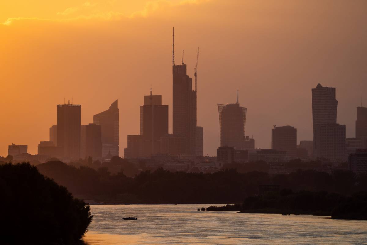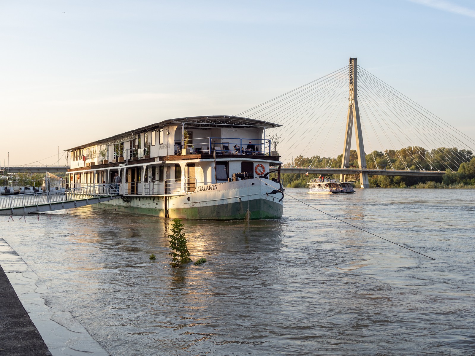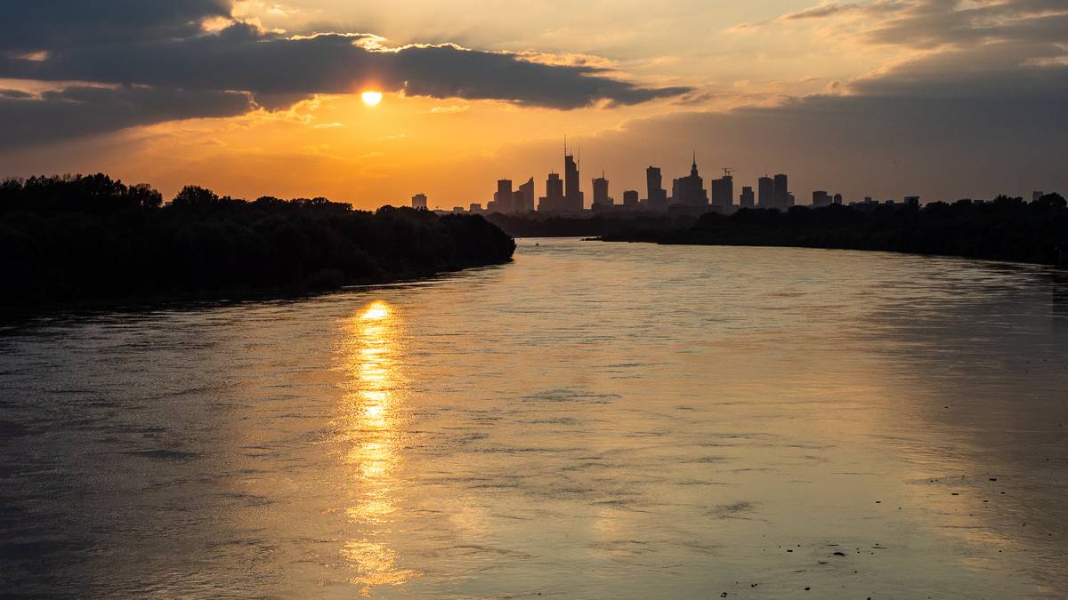 Bulwary Wiślane - sporo wody w rzece.