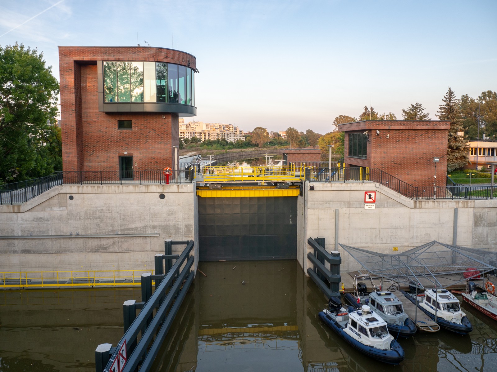 Nowa śluza portu i motorówki policji.