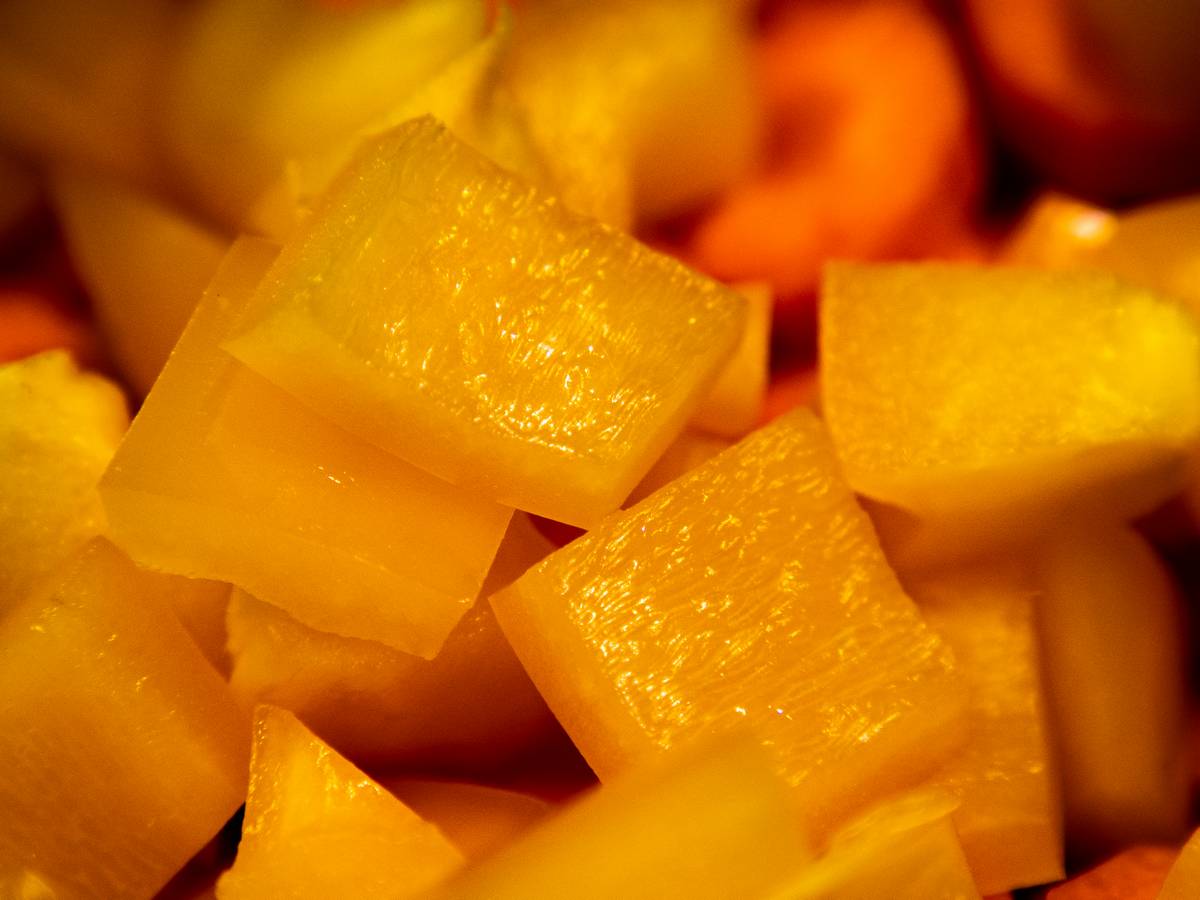 Krojąc warzywa na leczo.
