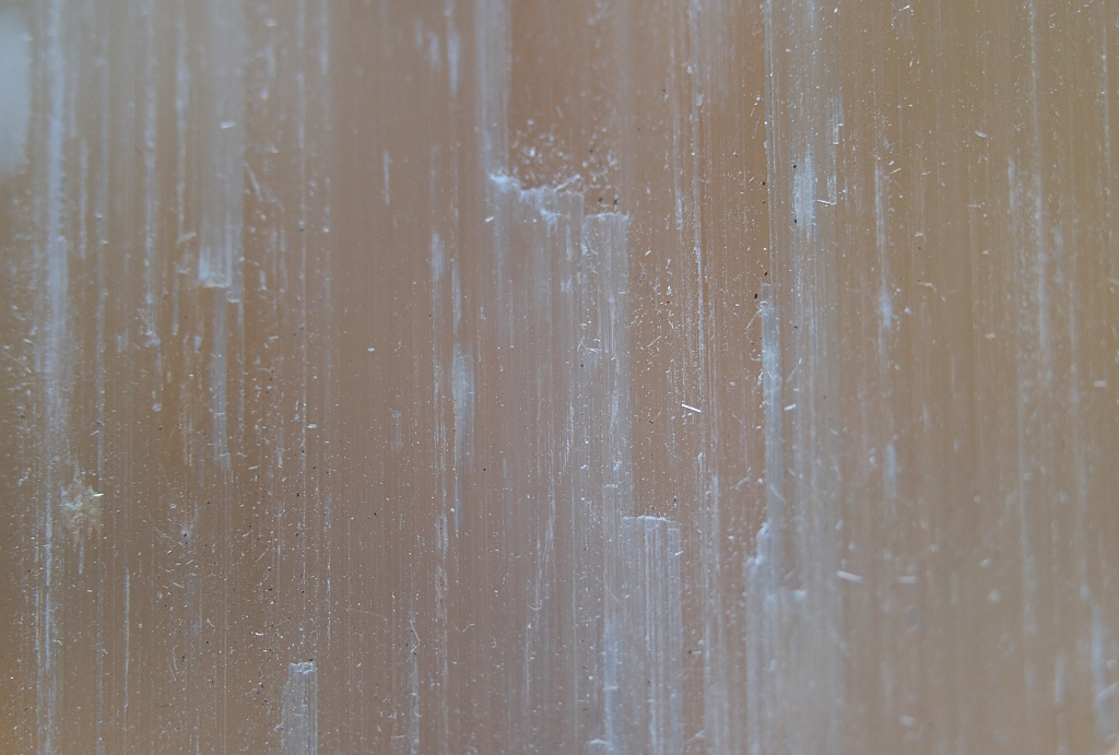 Nie, nie łuszczy sie. Zwarty i twardy.