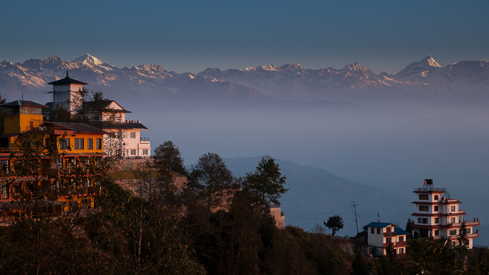 Wschód słońca w Nagarkot z widokiem na Langtang.