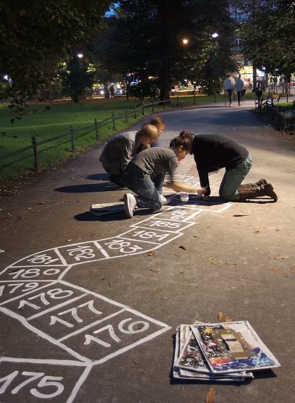 Argentyńska artystka, Agustina Woodgate, namalowała kilka 350 pól do gry w klasy na Plantach i pobliskich ulicach Krakowa :) .