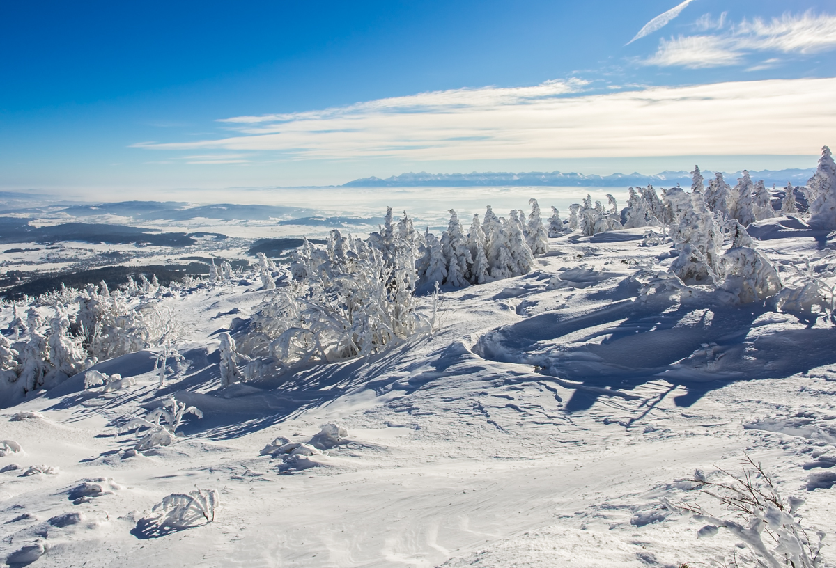 Zaczynamy od początku - z Przełęczy Krowiarki, piękne słońce, temperatura ok. -10 stopni, ale pod tą górę zrobiło się naprawdę gorąco. Lepiej nie ubierać się za ciepło bo uwędzimy się w sosie własnym :shock:. Ciepłe ubranie może przydaś się później.