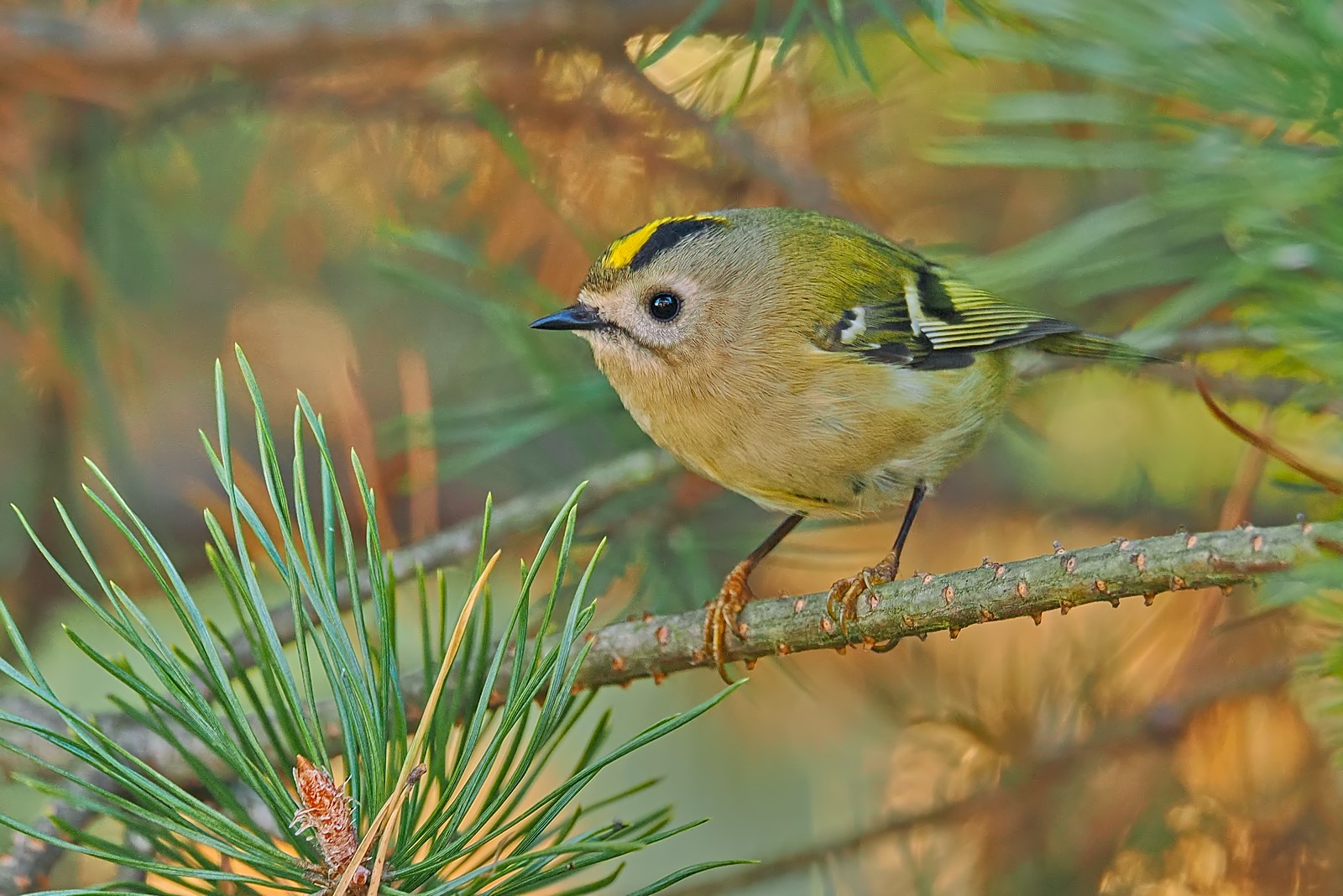 Trznadel wśród igieł sosny: