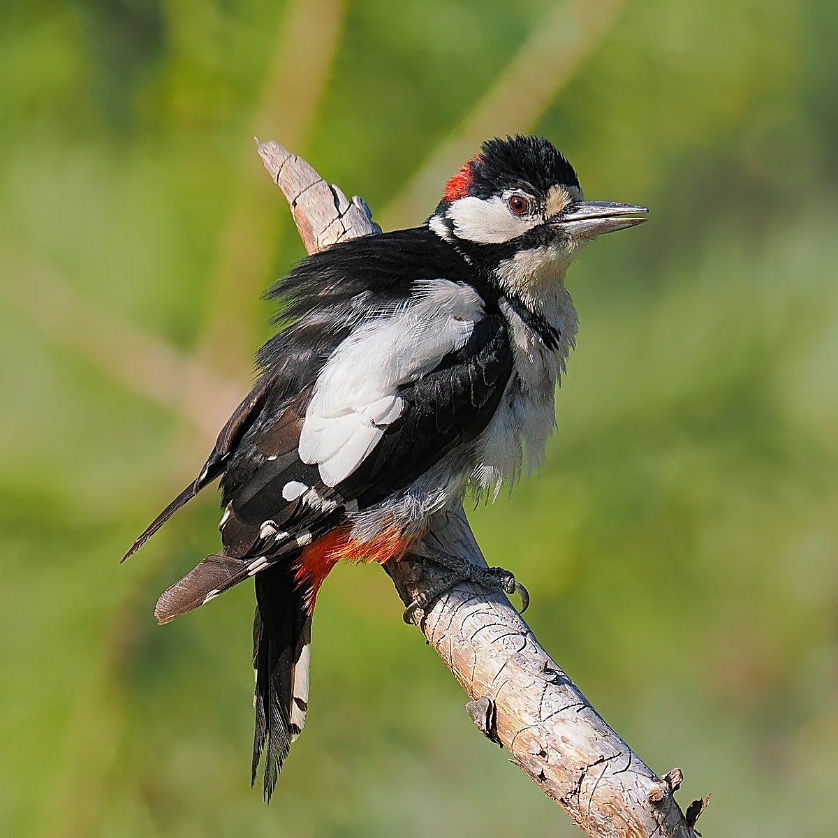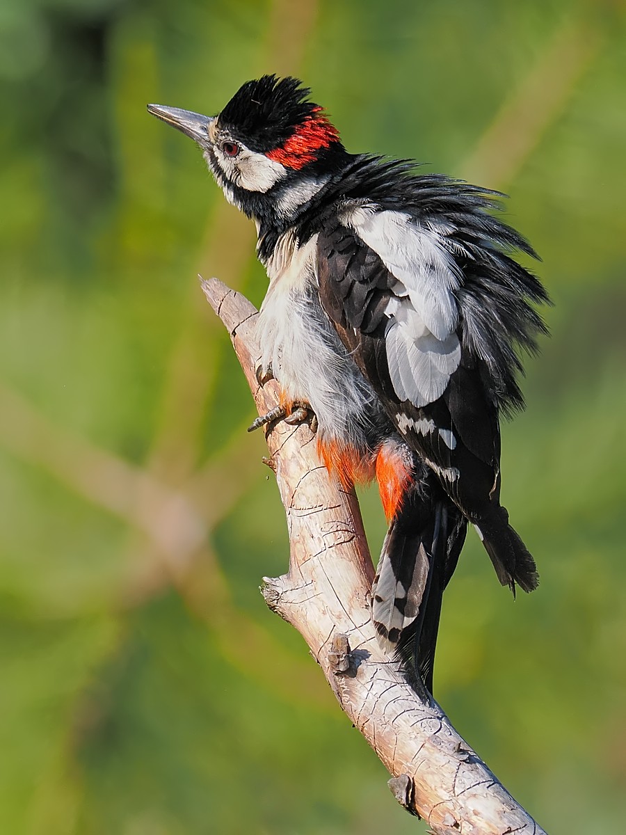 Dzięcioł duży dziwnie nastroszony: