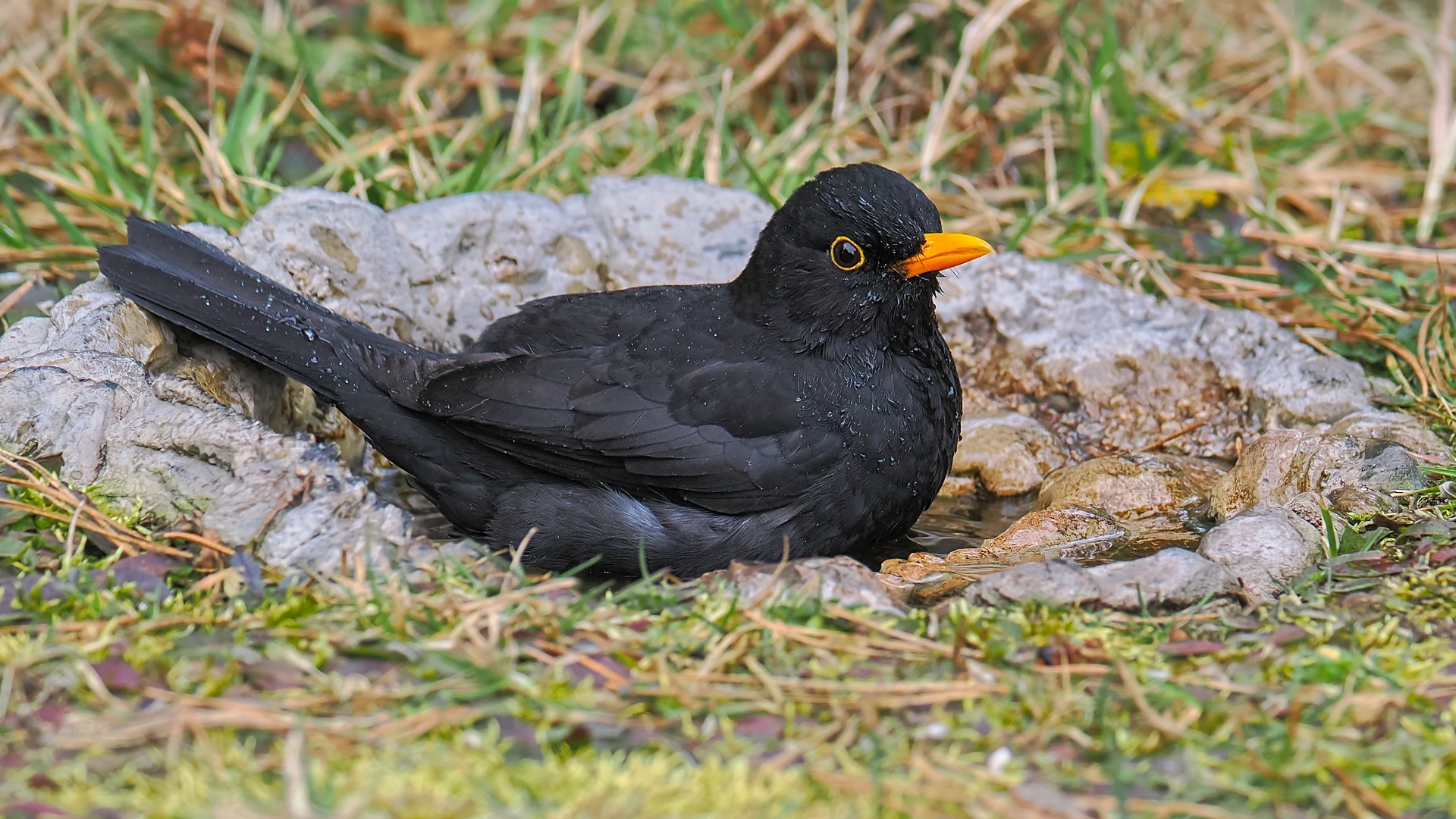 Kos w baseniku - chyba mu trochę ciasno:
