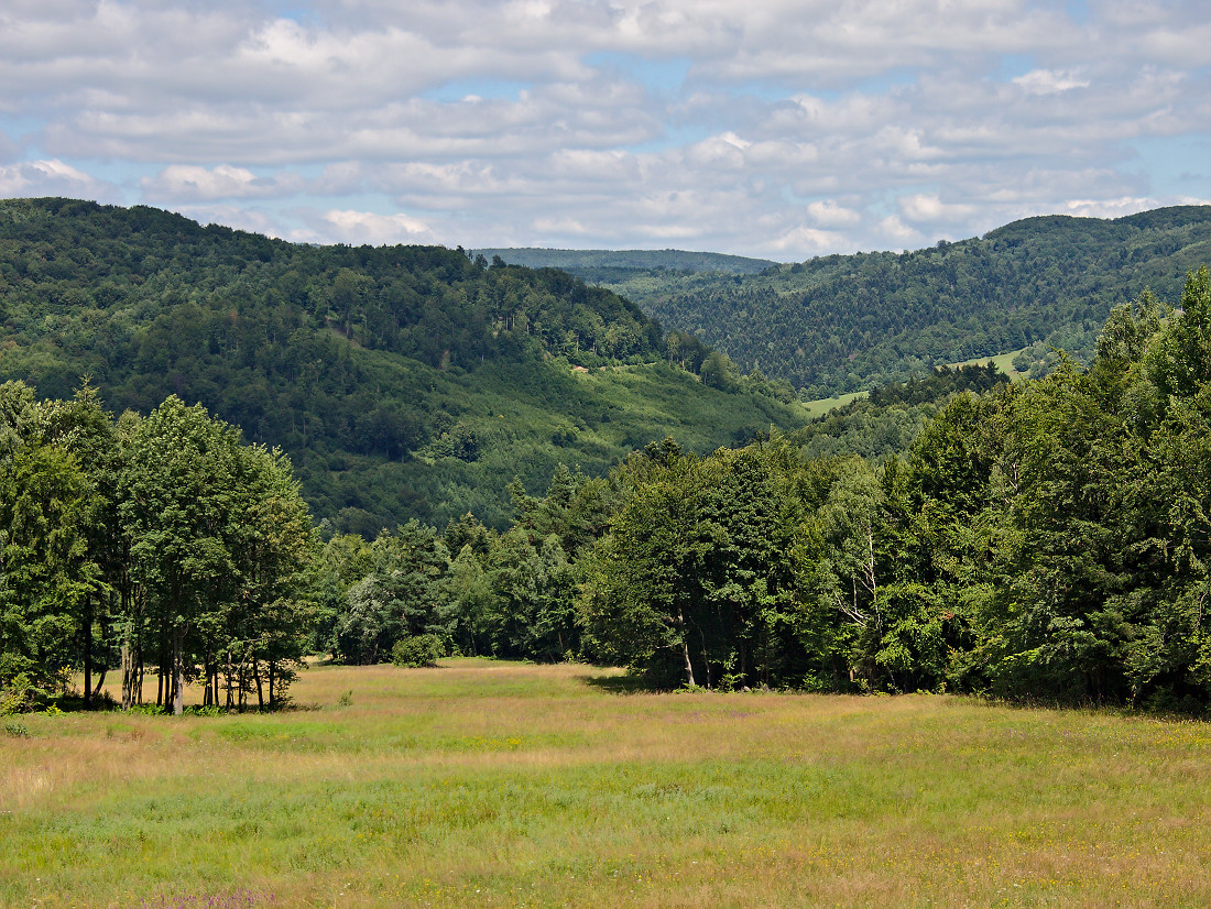 Pierwsze zdjęcie jest z otuliny rezerwatu "Regetovske rsšelinisko". Natomiast wzdłuż drogi Zborov - Chmelova - Becherov - Konieczna są pola, pola i jeszcze raz pola. Wygląda to tak jakby pozostały i całkiem dobrze sobie radziły pozostałości systemu PGR-ów.