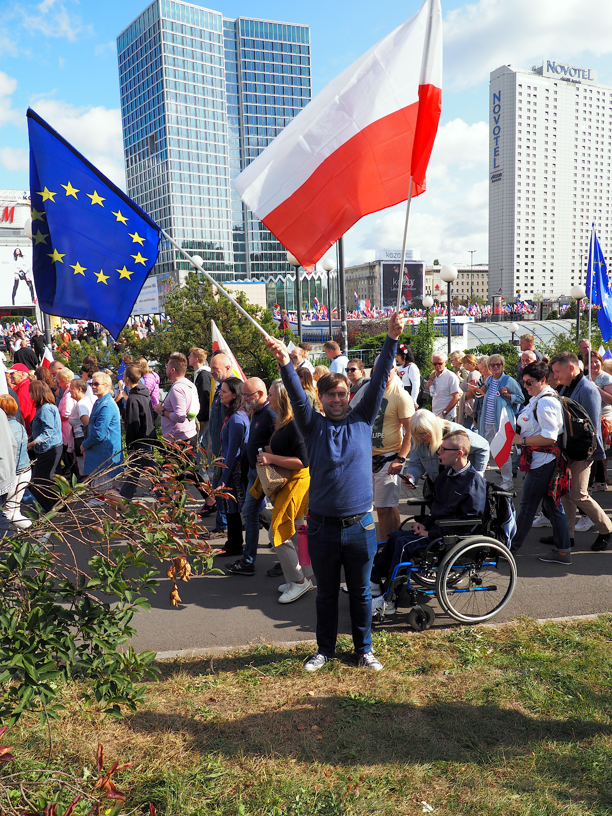 Atmosferka coś jak na pochodach 40 lat wcześniej, nawet trasa ta sama, tylko przed rozpadającą się trybuną honorową budują bunkier zwanym Muzeum Sztuki Nowoczesnej, więc widoku nie ma.