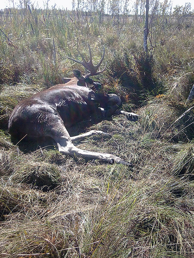 Leżał jak zabity. Ledwo oddychał. Myślałem, ze chory albo jakiś kłusownik go postrzelił. Okazało się, że nie.W jednym momencie zerwał się na nogi i na mnie pogonił. uciekłem jakieś 20-30 metrów i widząc go tuż za plecami padłem na pysk w bagno, żeby nie kusiło go trzasnąć mnie porożem. Uderzył lewym badylem, a potem przecwałował po mnie reszta odnóży.