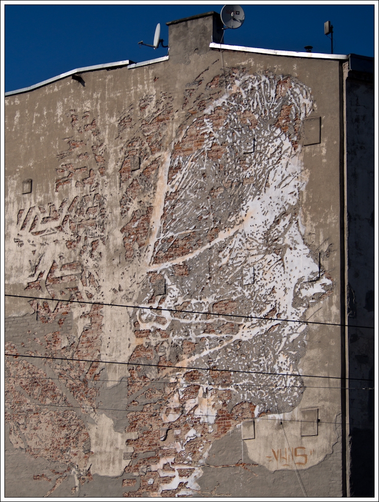 Mural wykonany bez pomocy farby, jednym narzędziem były wiertarki. Autor: Vhils, Portugalia