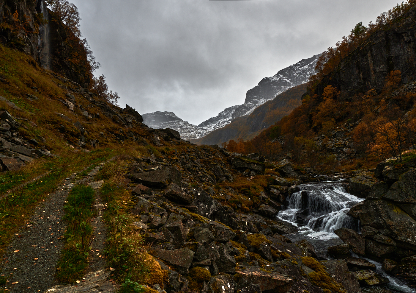 8 km oszacowałem na godzinę piętnaście i do przyczółka dotarłem z pięciominutowym spóźnieniem.To nie był problem. Problemem było to, że nie obejrzałem mapy przed wjazdem w dolinę. Zresztą zapomniałem dociągnąć ten kawałek Norwegii..... A w dolinie nie było sygnału GSM....