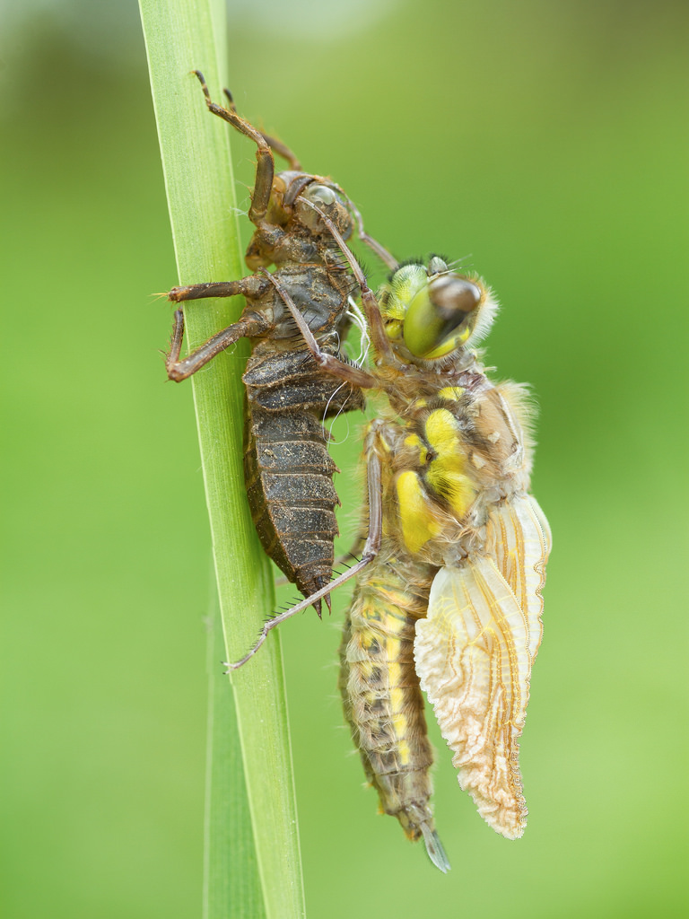 - nieco 'sytuacyjny' z potencjalną ofiarą na grzbiecie - niestety żadnej szansy na uniknięcie zasłonięcia części modelki liściem nie było - owad po ok. sekundzie odleciał, zresztą i tak nie mogłem zmienić kąta - modelka siedziała w głębi krzaka i podejść do niej pod innym kątem nie było jak :