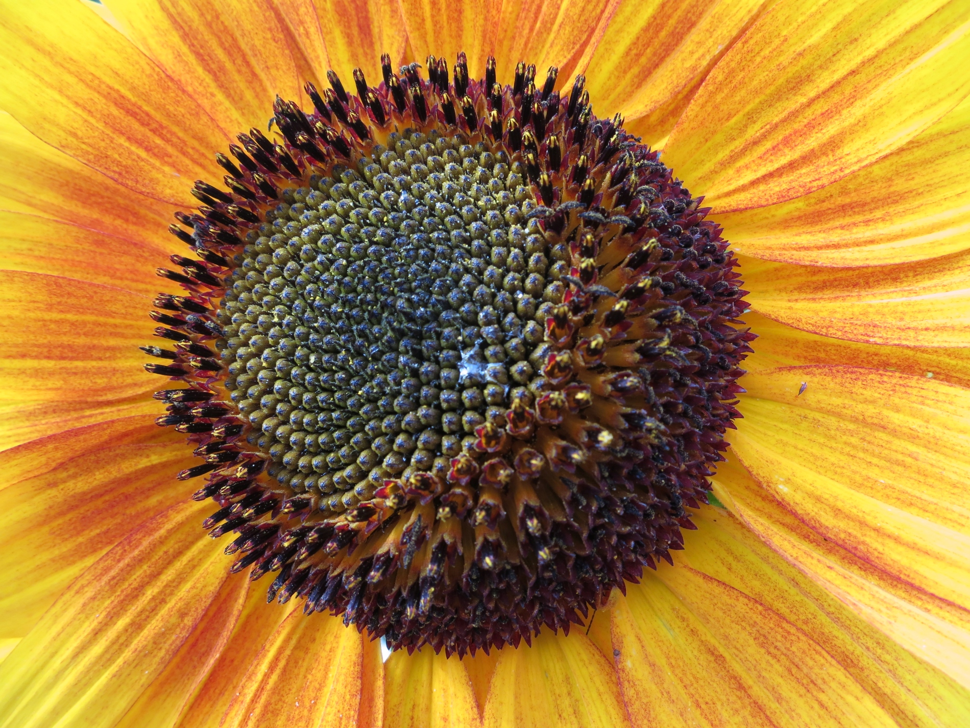 Na ostatniej fotce płatki tarczy słonecznika są prześwietlone. Generalnie żółte kolory, w tym pomarańczowy są dla aparatów starszej generacji trudne w rejestracji, bowiem są bardzo wrażliwe na przepalenie w miejscach oświetlonych bezpośrednio słońcem. Można tej trudności uniknąć fotografując słoneczniki w pomieszczeniu z odpowiednim światłem, lecz taka metoda, komplikuje proces fotografowania, bo trzeba by ściąć słonecznik (słonecznik ścięty, to jednorazowy model), zatachać do studia, ująć w jakiś uchwyt, ustawić oświetlenie, dobrać tło, itd.