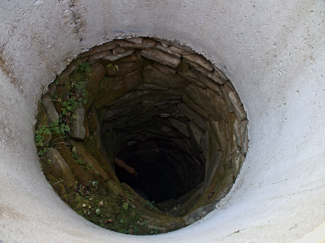 No to wiedziony ciekawością wsadziłem łeb swój niesforny do takiej studni. Stara, z kamienia, tylko wierzchnia cembrowina betonowa.