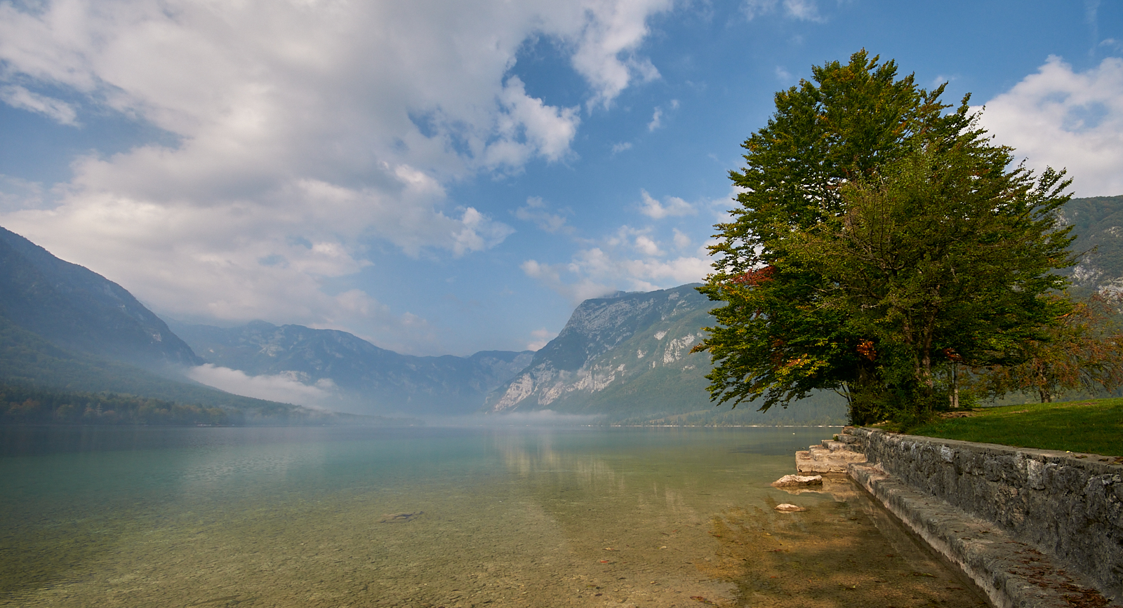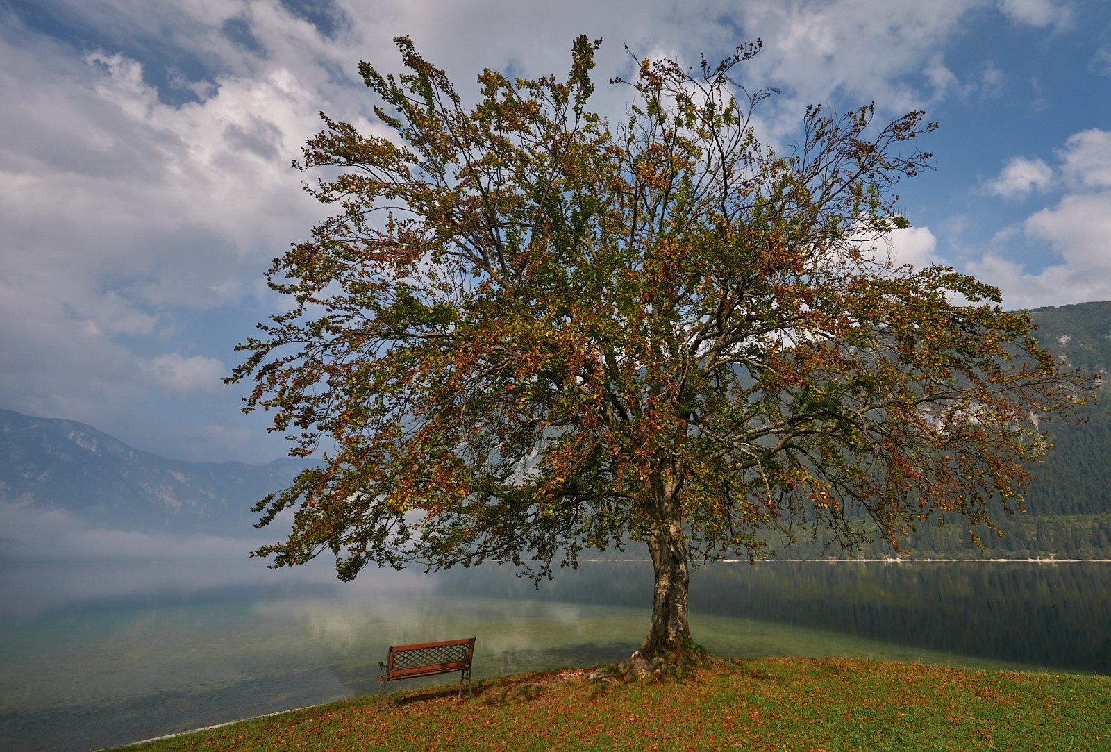 Bardzo wpadła mi w oko fotografia 886 i sam nie wiem czemu. Czy to drzewo z częściowo zżółkłymi liśćmi, samotna pod nim ławeczka czy wianuszek listowia wokół drzewa. Jest jednak pewne, że to wszystko złączone spójnie w jeden obraz przykuwa wzrok. Z Alp ładne a szczególnie barwa wody dająca poczucie nieskalanej świeżości natury.