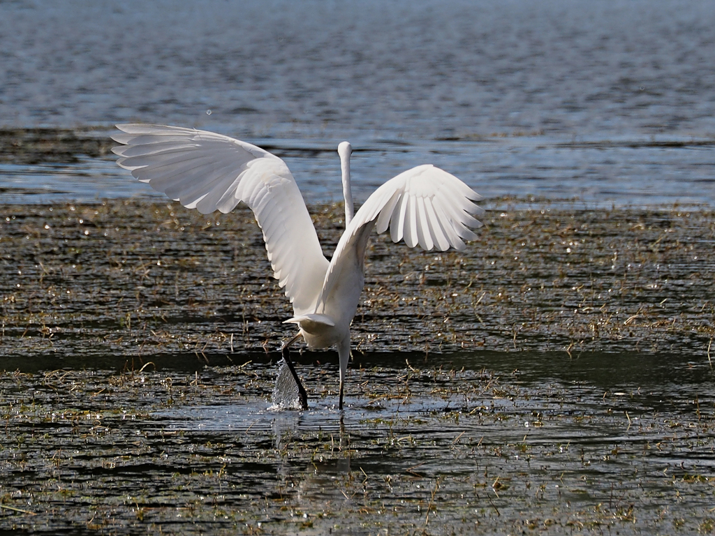 Nie mam żadnego sprzętu maskującego, wykorzystuję ogólnodostępne miejsca. Czaple 303, 304 są znad małego stawu, gdzie mogę schować się za trzcinami nie włażąc do wody. Czekam cierpliwie aż ruszą tyłki, ale żeby zrobić zdjęcie muszę wstać - oczywiście natychmiast mnie zauważają, podnoszą wrzask i kierują się z szybkością błyskawicy na drugą stronę stawu pokazując mi zadek. I tak się bawimy kto szybszy - czapla czy AF Olka. Niestety z reguły wygrywają czaple.