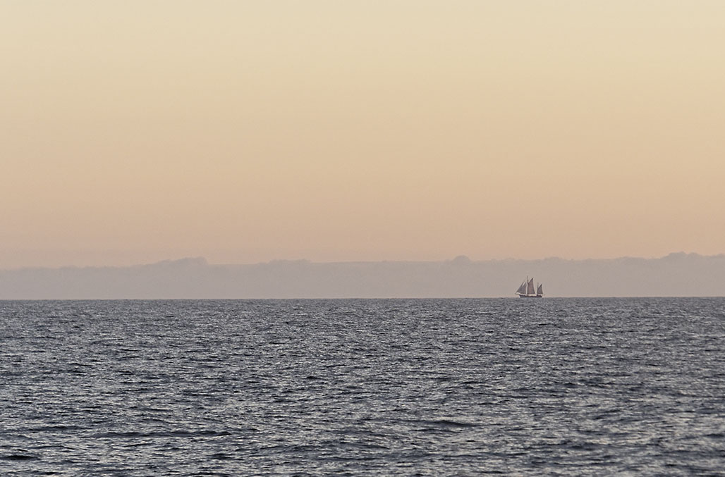 Woda zmącona, ale nie wzburzona, lekka mgiełka, i on, samotny biały żagiel. :mrgreen: