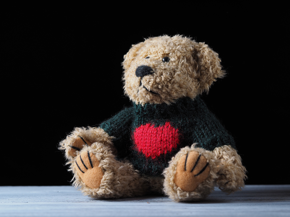 Jak widać lampa jest jedna. Jest to tzw. światło główne, czyli światło określające ekspozycję i rozkład cieni na miśku. Jeśli tło ma być czarne, to bardzo ważny jest stosunek odległości lampy od miśka i lampy od tła. Softbox powinien być bardzo blisko miśka i jak najdalej od tła. Jeśli stosunek tych odległości jest w okolicach dziesięciu (czyli np. softbox z 15 cm od miśka, a tło z 1,5m dalej), to mamy szansę na sukces nawet z jasnym tłem. Przeszkodą może być to, co znajduje się po prawej stronie aparatu (po lewej stronie miśka). Jeśli jest tam jasna ściana, to zadziała ona jak blenda i rozjaśni nieco tło. Warto zasłonić taką ścianę czymś ciemnym, np. ciemną stroną blendy lub jakąś ciemną tkaniną. No i na wstępie koniecznie trzeba zrobić zdjęcie tła bez lampy, żeby się upewnić, że światło zastane nie przeszkadza nam w zabawie :)