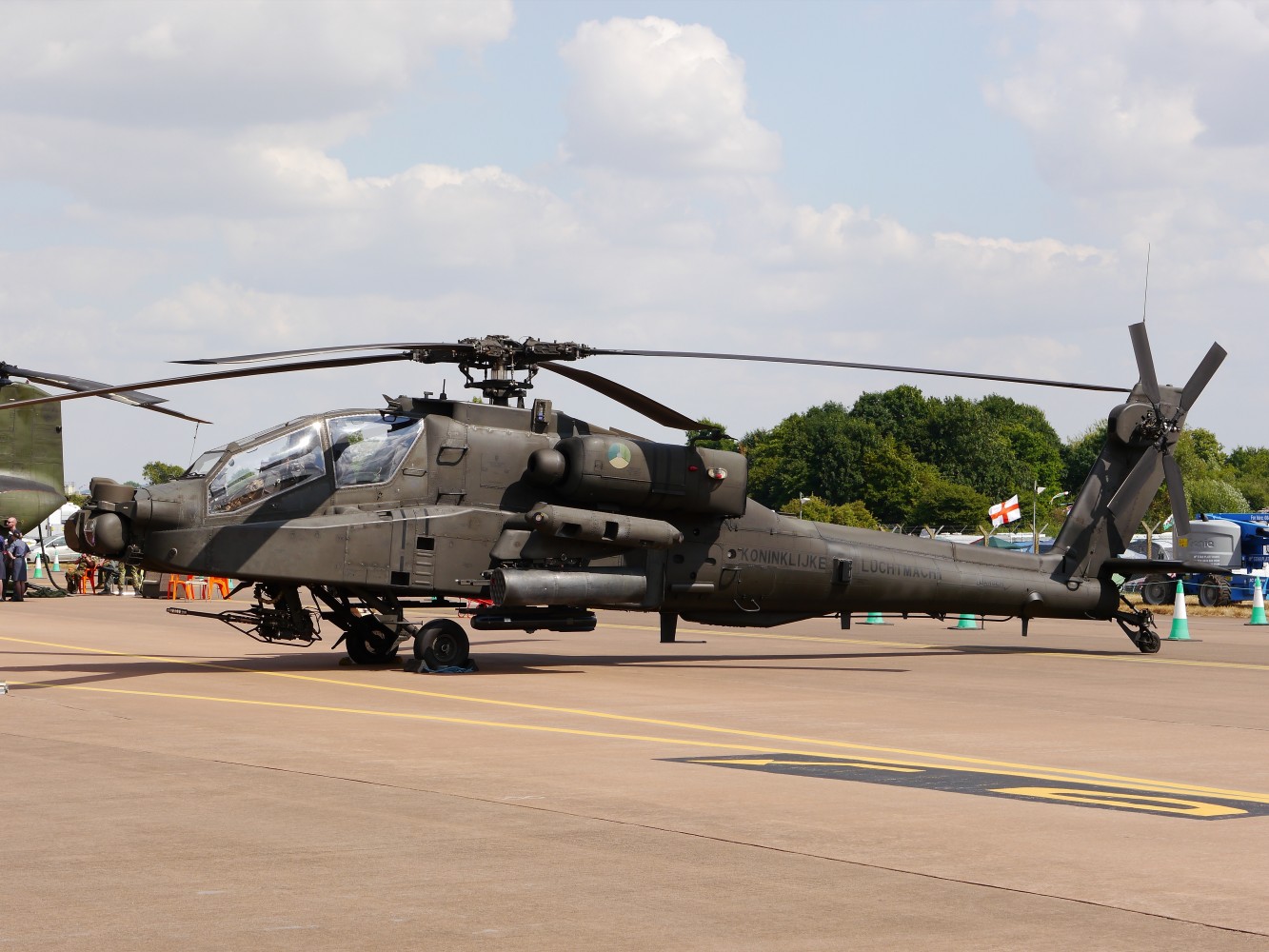 Longbow zawsze mi się kojarzył z charakterystyczną anteną radaru FCR (Fire Control Radar) nad wirnikiem - tu mamy zubożoną wersję pozbawioną tego radaru. Zastanawiam się, czy ma to związek z tym, że jest to wersja eksportowa (sądząc po napisach - chyba holenderska?).