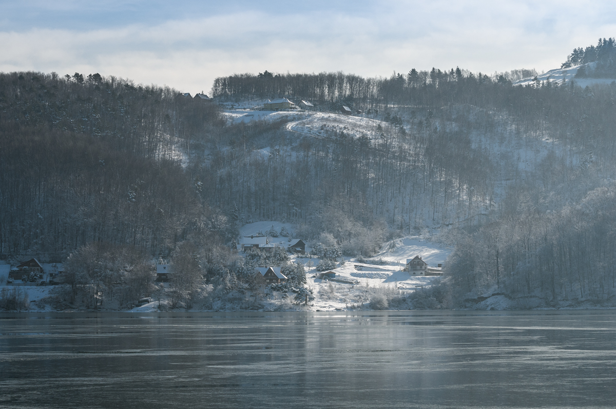 Rożnów zimowy samochodowy, niedzielny i cichy, ni żywego ducha nad zaporą nie było poza jakimś gościem który drzemał w samochodzie.