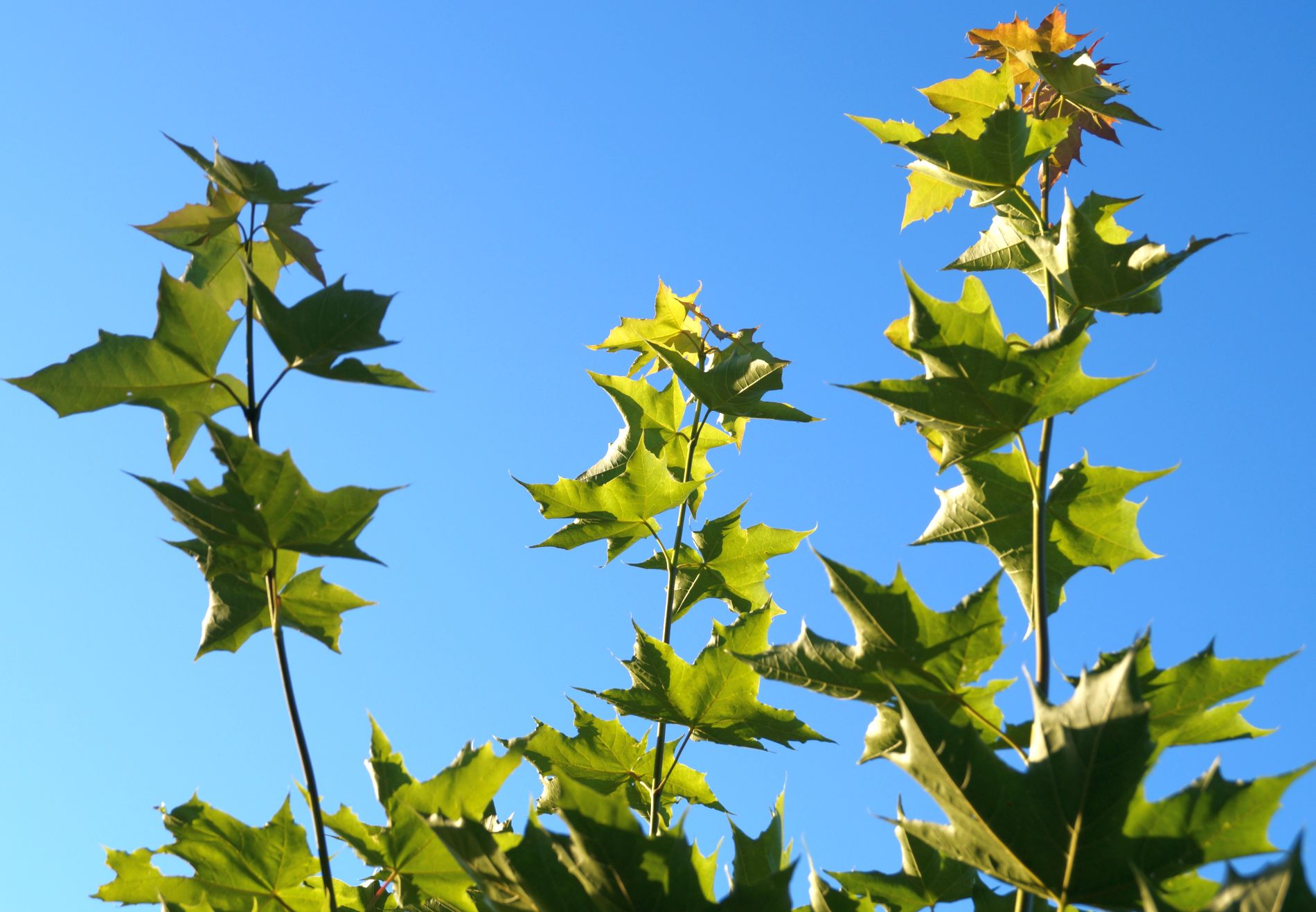 Takie pędy i liście na nich (to już jest fotografia mocno zbliżeniowa) są najdogodniejsze do fotografowania, bo pędy są wiotkie, niskie i poddają się dobrze kadrowaniu. Niestety w lasach, na polanach, czy przy lasach trudno spotkać takie pędy. W lasach klony nie rosną.