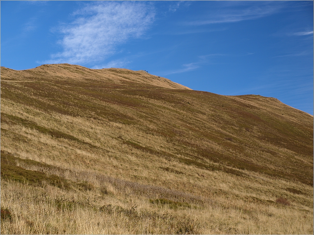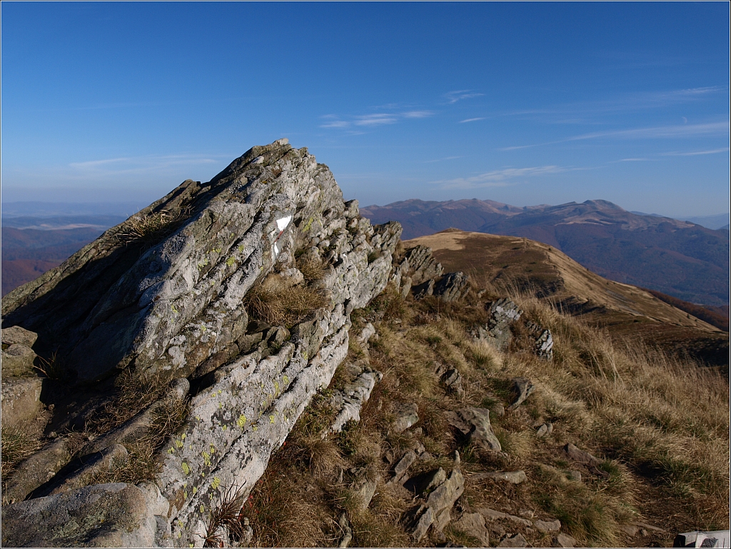 Niedaleko kolejny wierzchołek Połoniny Caryńskiej, ale już poza szlakiem, który skręca w lewo, w kierunku zachodnim.