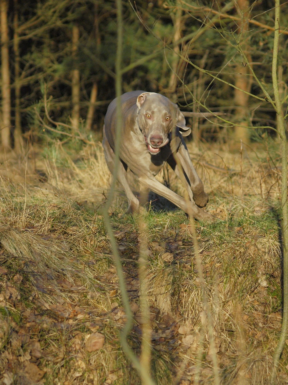 Bo to weimarski, bardziej szaro-beżowy. Węgierski jest brązowy/rudy ale kształt obu bardzo podobny. Kolor ma taki jak na zdjęciu. Wcześniej są fotki jak wyszedł z wody to jest bardziej beżowy i taki jest w ciepłym świetle (np. słońce).