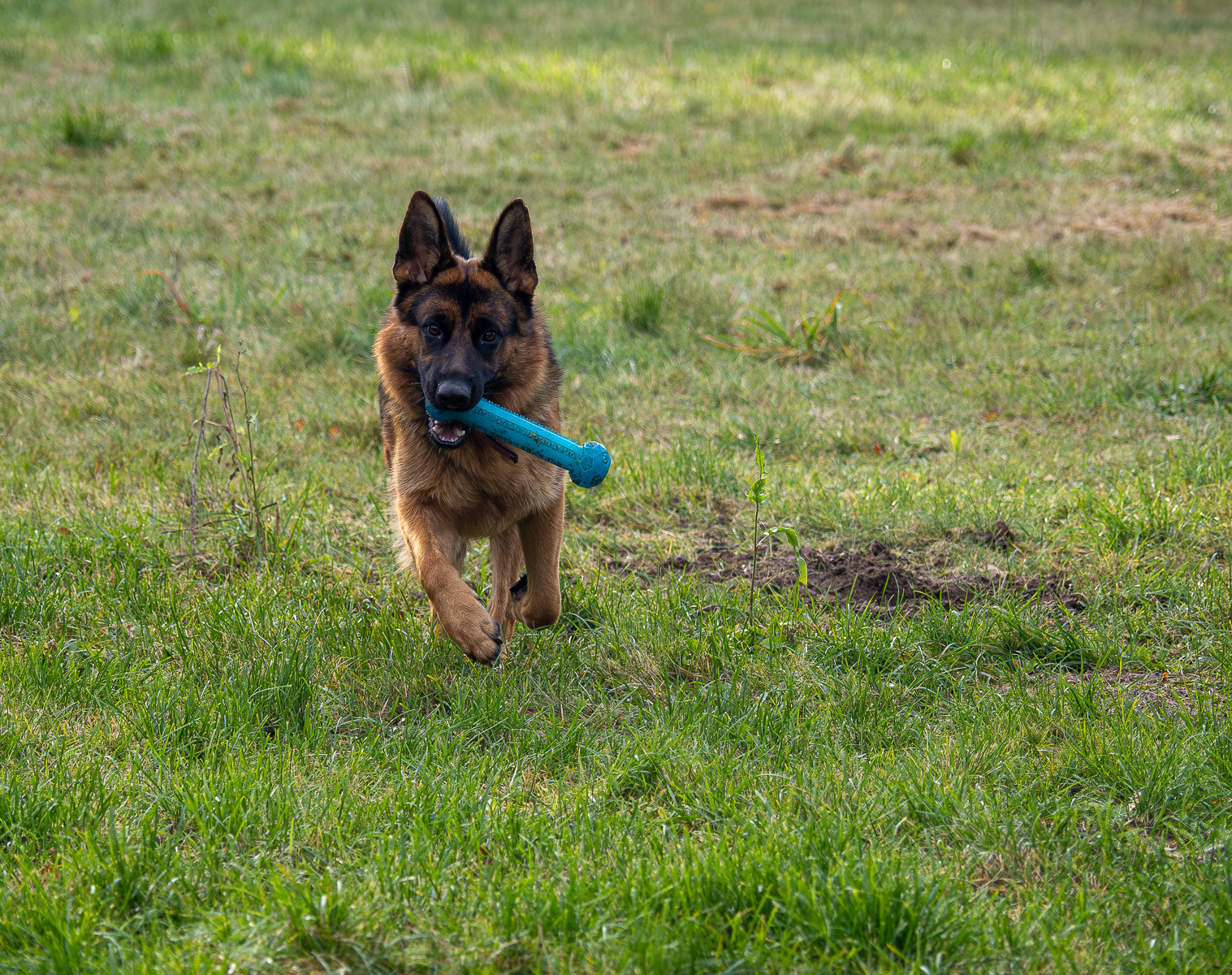 Podoba mi się fotka owczarka ze zdobyczą. Zaczepne spojrzenie, paradna poza, oczekiwanie, kto przyjdzie do woza.