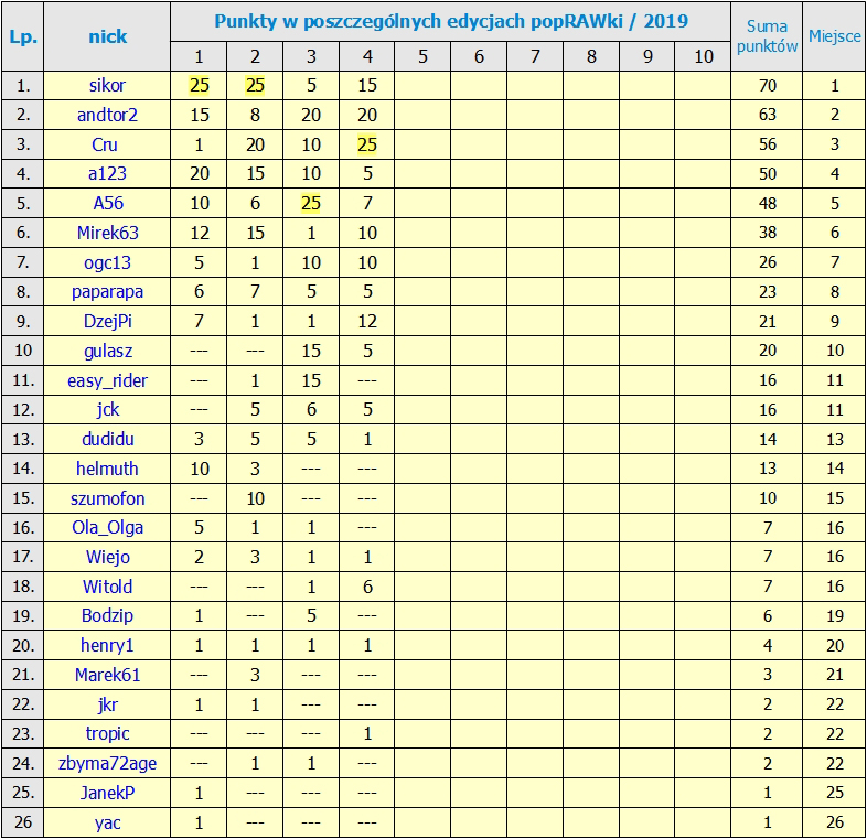 RANKING po 4 Edycji.