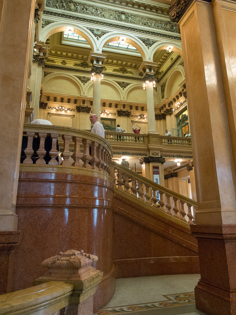 AUGG33 - Tu, zawód stulecia. Czytając przed wyjazdem o atrakcjach, wszędzie były zdjęcia z Teatro Colon w pełnej iluminacji. Ucieszony przygotowałem się na to. Mieliśmy pecha do kwadratu. W dniu naszej wizyty akurat trwały próby oświetleniowe nowej scenografii i główna sala był kompletnie zaciemniona. Poniżej to co zarejestrowała matryca.