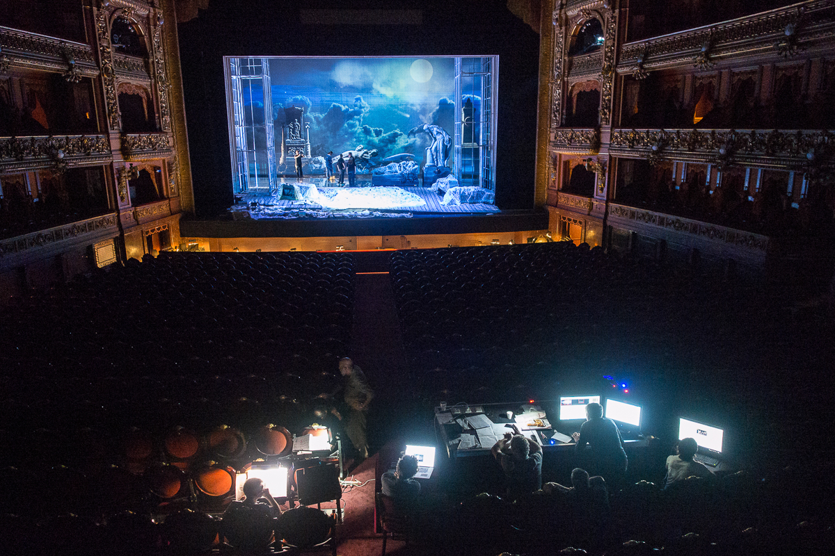 AUGG35 - Panorama sklecona ze zdjęć zrobionych aparatem podpartym na pluszowej balustradzie widowni.