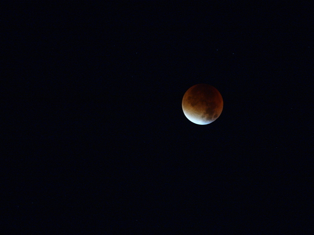 Jednak fotograficznie, przy pełnym zaćmieniu, poległam. Fotografowałam E-P5 + Panasonic 100-300, oczywiście na najdłuższej ogniskowej. Póki cień nachodził na księżyc - wszystko było dobrze. Niestety, gdy zaczęło się pełne zaćmienie - mój zestaw wszedł w tryb - "widzę ciemność". Za żadne skarby nie chciał zobaczyć zaćmionego księżyca. W efekcie próbowałam łapać księżyc w ciemno. Gdy po walce udało mi się go złapać w kadr, okazało się, że ustawiona wcześniej ostrość nie jest dobra. Efekt - uchwyciłam krwisty księżyc, ale niestety wszystkie zdjęcia z lekkim rozmyciem, czyli do kitu :(. Próby ustawiania ostrości w ciemno niczego nie poprawiły. Jedyny plus, że zobaczyłam zjawisko.