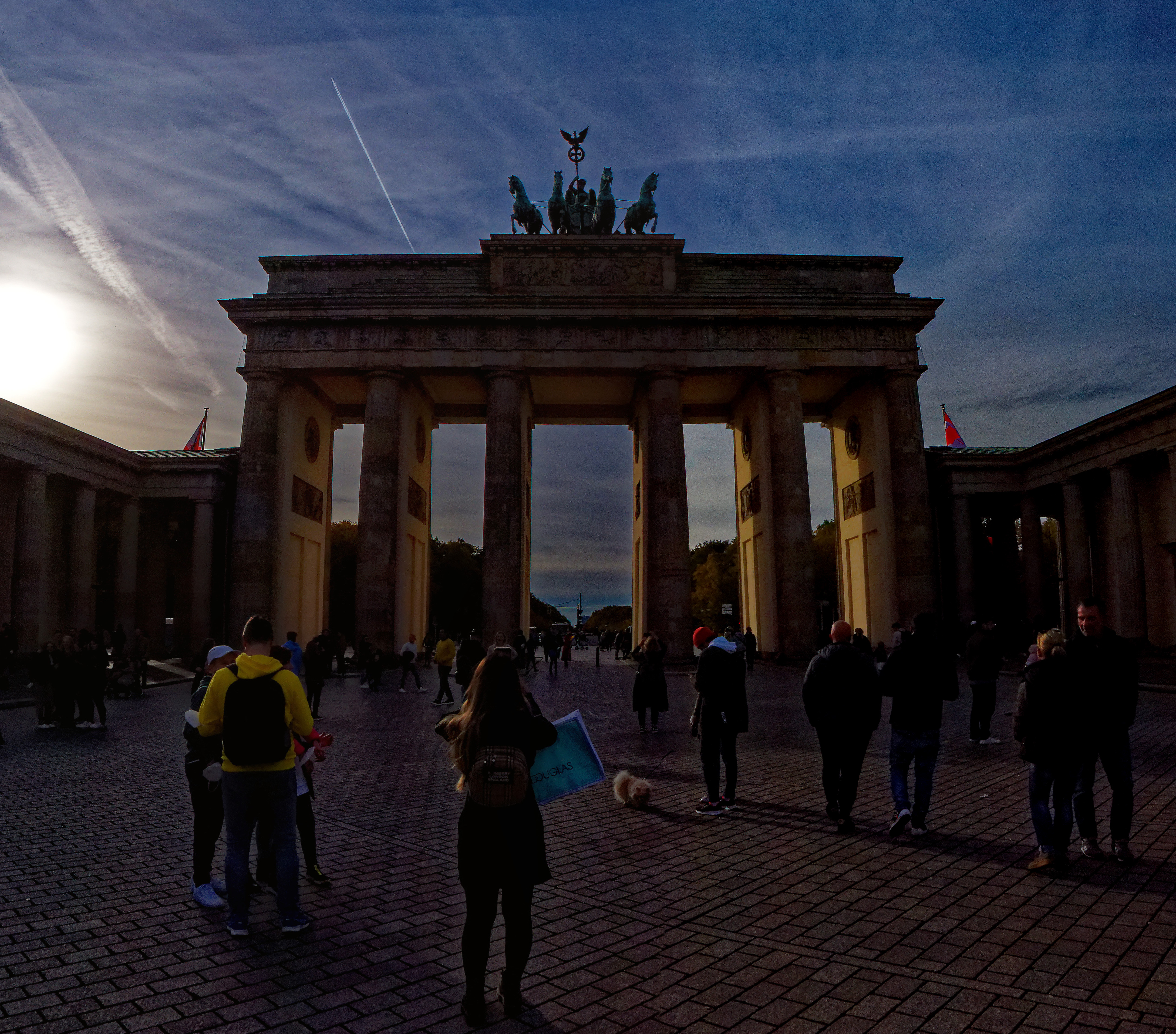 Zdjęcie Bramy Brandenburskiej podoba mi się ze względu na światło, cienie, ujęcie, układ postaci.