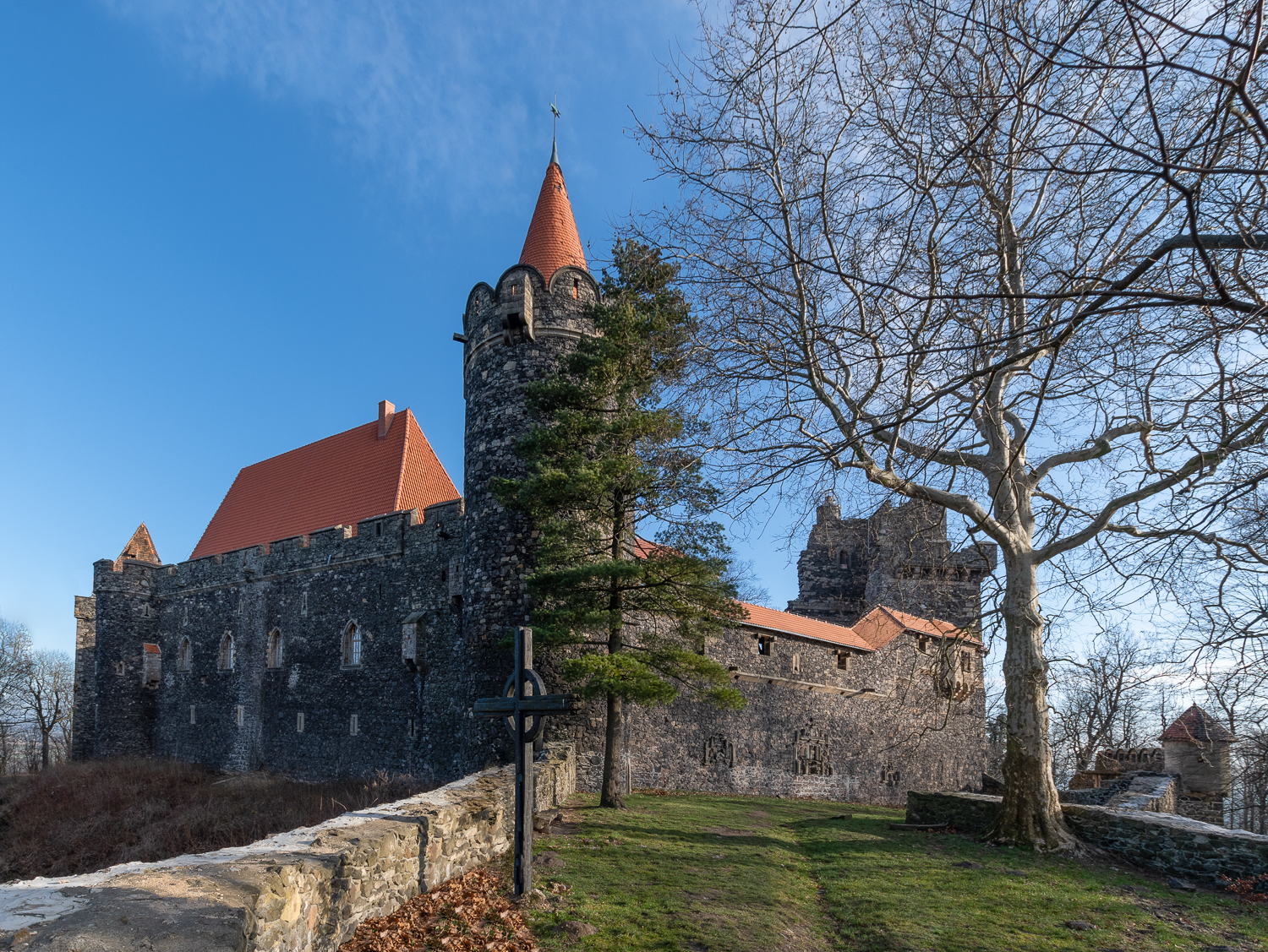 Jedno ze zdjęć wyróżnia się innym balansem bieli - cieplejszym co nie bardzo mi się podoba. Mury zamku mają nienaturalny kolor, niebo także straciło swoją kolorystykę. Dodatkowo z prawej strony pień drzewa i z lewej pozostawione gałęzie psują cały kadr. Wydaje mi się, że w pewnych partiach nieba i muru istnieją przepalenia, co także źle wpływa na zdjęcie.