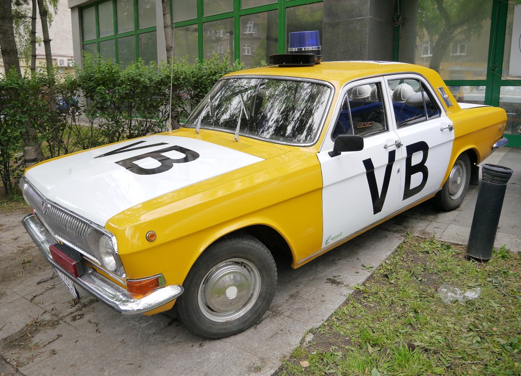 Tym razem prezentacja kolejnej gabloty produkcji byłego ZSRR, a mianowicie GAZ-24 Wołga, będącej następcą poprzednio opisywanego GAZ-21. Podobnie jak tamten typ wytwarzany był w dwóch wariantach nadwozia : sedan (GAZ-24-01) i kombi (GAZ-24-02). Ten model również montowano w Belgii i oferowano na zachodzie pod nazwą Scaldia-Volga M24/M24D (odmiana benzynowa oraz Diesel), oczywiście z lepszym wyposażeniem i wykończeniem wnętrza. Początki tego typu datują się na 1966 rok, kiedy to skonstruowano pierwsze prototypy. Rok później odbyła się oficjalna prezentacja i uruchomienie montażu seryjnego. Do końca 1969 roku wytworzono niewielką partię pojazdów, dopiero od 1970 rozpoczęto masową produkcję. Odmiana kombi pojawiła się w roku 1972. Pierwsza generacja Wołgi była wytwarzana do 1977 (z drobnymi zmianami) i od tego roku zastąpiona została drugą, trwającą do 1985. Trzecia ostatnia generacja GAZ-24-10 była w produkcji w latach 1985-92 i najbardziej różniła się konstrukcyjnie od poprzednich. Zmieniono między innymi wnętrze, silniki, elementy nadwozia, podwozia itp. Jako ciekawostkę trzeba dodać, iż występowały jeszcze w niewielkich ilościach inne warianty jak kabriolet, czy pick-up, które jednak nie były wytwarzane przez zakład GAZ. Należy jeszcze wspomnieć o uterenowionej wersji z napędem 4x4 GAZ-24-95 (też nie trafiła do produkcji). W małych ilościach dostępny był za to wariant GAZ-24-24 z silnikiem V8, 3-biegową automatyczną skrzynią biegów i wspomaganiem kierownicy. Fotografie przedstawiają prawdopodobnie drugą generację Wołgi w zmienionych barwach VB.