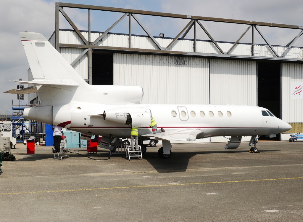 Dawno nic tu nie prezentowano, więc wrzucę zdjęcie Falcona 50 z tegorocznego salonu Le Bourget. Ten samolot nie był eksponatem na wystawie - obsługiwano go przy jednym z hangarów lotniska.