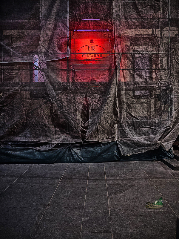 Zdjęcie zrobione w bardzo nieciekawym fotograficznie miejscu – czyli na Krakowskim Przedmieściu, tuż przy Placu Zamkowym. Ostatnio mam zresztą fart i inne spośród najnudniejszych miejsc w stolicy(Pekin) okazują się całkiem inspirujące. Zdjęcie – poprzez widoczny napis na szyldzie – robi się trochę gadające, ale w sposób, który jest jeszcze dla mnie możliwy do zaakceptowania.